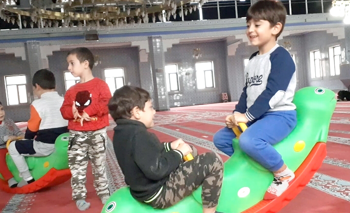 Çocukların camiye olan sevgisini artırmaya yönelik çalışmalar yaptıklarını belirten Hz. Ömer Camii İmam Hatibi İbrahim Aslan, "Camimize aileleriyle birlikte gelen çocuklarımız oyun alanında oyunlar oynuyor, diğer yandan dini değerlerimizi öğrenme imkanı buluyor." dedi.