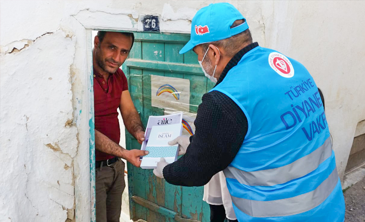 İl ve ilçe müftülükleri koordinesinde tüm il, ilçe, belde ve köylerde vatandaşları evlerinde tek tek ziyaret eden ve koronavirüs tedbirleri hakkında bilgi veren din görevlileri, resmî iş ve işlemler de dâhil olmak üzere vatandaşların her türlü ihityacında yanlarında olmuyor.