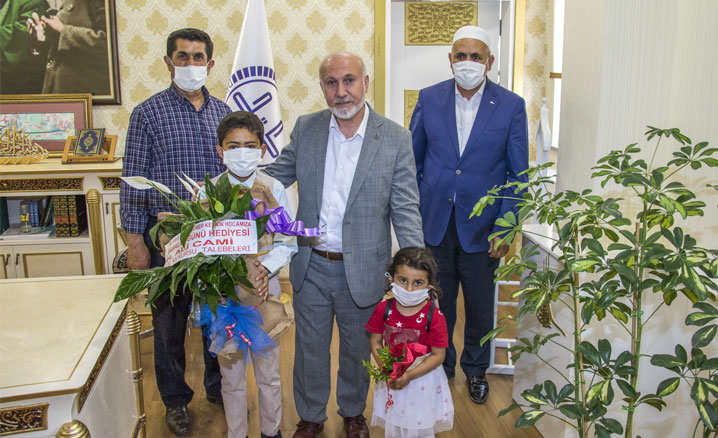 Minik kardeşler Meryem ve Muhammed Mirac, Müftü Keskin'e çiçek takdiminde bulunarak gününü kutladı. Müftü Keskin, çocukların bu güzel davranışlarından dolayı kendilerine ve ailelerine teşekkür etti. Çocuklarla bol bol sohbet eden ve çikolata ikram eden Müftü Keskin, çocuklara salgından dolayı bu sene yüz yüze yaz Kur'an kurslarının olmayacağını, uzaktan eğitimle Diyanet TV'nin yaz Kur'an kurslarına kayıt yapmalarını ve ders programlarını takip etmelerini istedi.