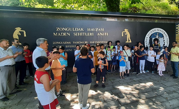 Etkinlikler çerçevesinde Zonguldak Maden Şehitleri Müzesi'ni ziyaret eden çocuklar, şehitler için Kur'an-ı Kerim okudu, dua etti.