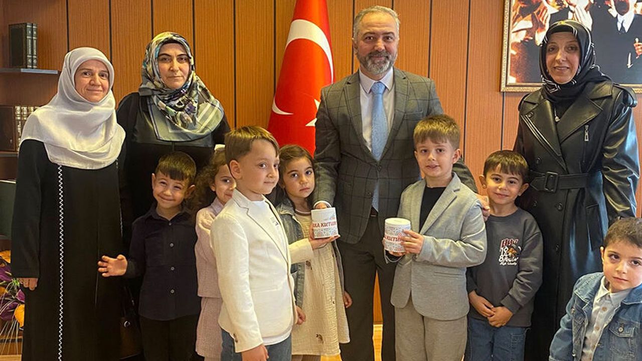 Bağışlarını teslim etmek üzere Kur'an Kursu öğreticileri Zahide Albayrak Saylan, Emine Ölçer, Fulya Çaralan ve Firdevs Selçuk ile birlikte Çorum İl Müftülüğüne gelen minik öğrenciler ve velileri, Çorum İl Müftüsü Şahin Yıldırım’ı makamında ziyaret etti.