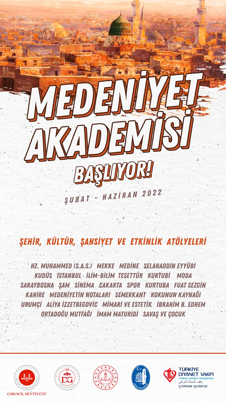 Çorum İl Müftülüğü ile Türkiye Diyanet Vakfı (TDV) Çorum Şubesi, Çorum Belediyesi ve Çorum Milli Eğitim Müdürlüğü iş birliğinde gençlere yönelik "Medeniyet Akademisi" adlı proje hazırlandı.
