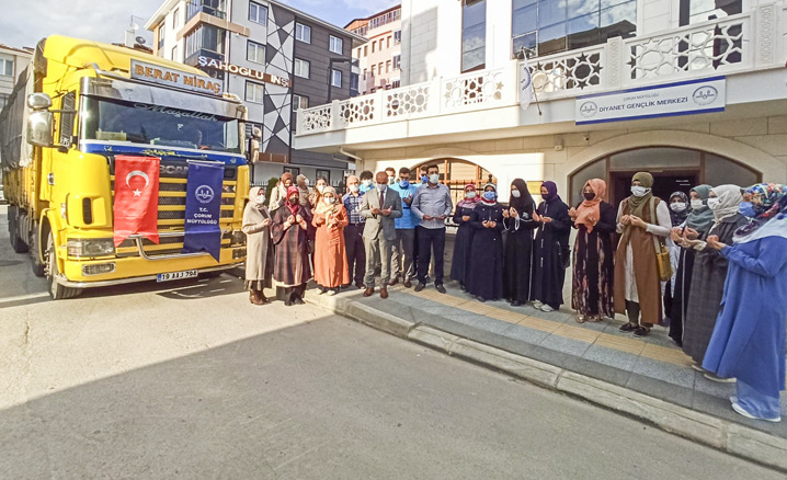 Hazırlanan iyilik tırı, Çorum Diyanet Gençlik Merkezi önünde düzenlenen törenle Tel Abyad’a uğurlandı.