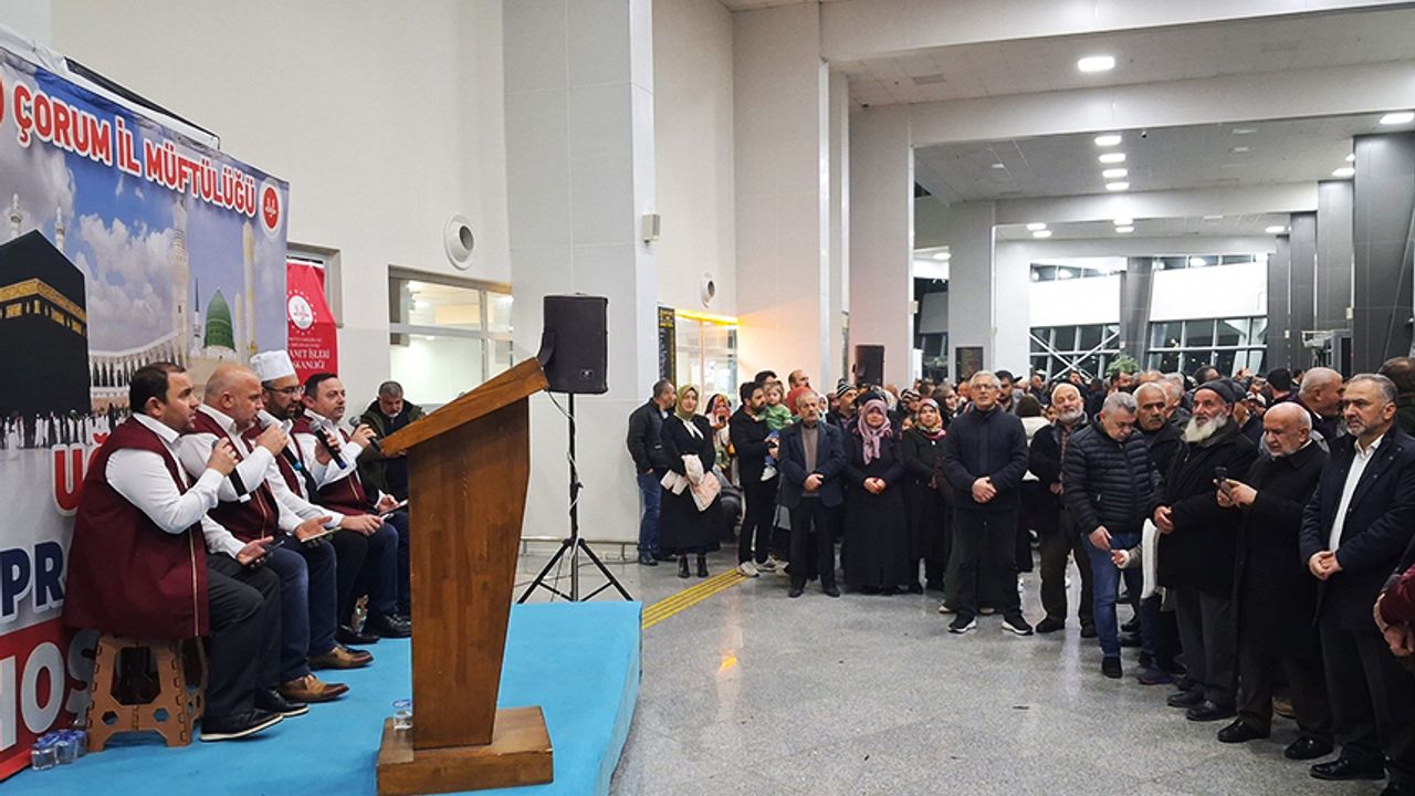 Program, Kur’an’ı Kerim tilavetiyle başlayıp Çorum Müftülüğü Tasavvuf Musikisi Korosu’nun okudukları ilahilerle devam ederken umre yolcuları ve yakınları duygu dolu anlar yaşadı.