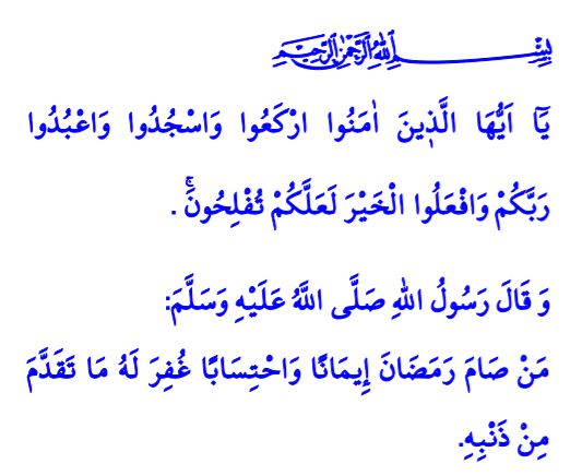 Yüce Rabbim hepimize Kur’an’la, oruçla ve namazla dirilmeyi nasip eylesin. Hutbemi Cenâb-ı Hakkın şu emriyle bitiriyorum: “Ey iman edenler, rükû edin, secde edin, Rabbinize kulluk edin ve hayır işleyin ki kurtuluşa eresiniz.” 2