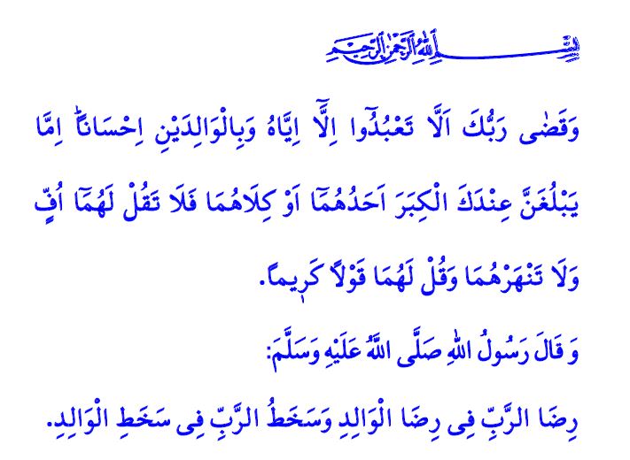 İyilik ve ihsanımızı, bir çift tatlı sözümüzü ve güler yüzümüzü, saygı ve hoşgörümüzü anne-babamızdan esirgemeyelim. Onların gönlünü yapma ve hayır dualarını alma gayretinde olalım. Bu duaları, dünyada nimetimiz, ahirette ise kurtuluş vesilemiz olarak görelim. Resûl i Ekrem (s.a.s)’in şu uyarısı nı asla unutmayalım: “Rabbin hoşnutluğu, anne ba banın hoşnutluğundadır. Rabbin öfkesi de anne babanın öfkesindedir. (3)