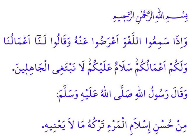 Okuduğum ayet-i kerimede Yüce Rabbimiz şöyle buyuruyor: “(Müminler) boş söz işittikleri zaman ondan yüz çevirirler ve ‘Bizim yaptıklarımız bize, sizin yaptıklarınız da size! Esen kalın. Bizim cahillerle işimiz yok’ derler.”[1]