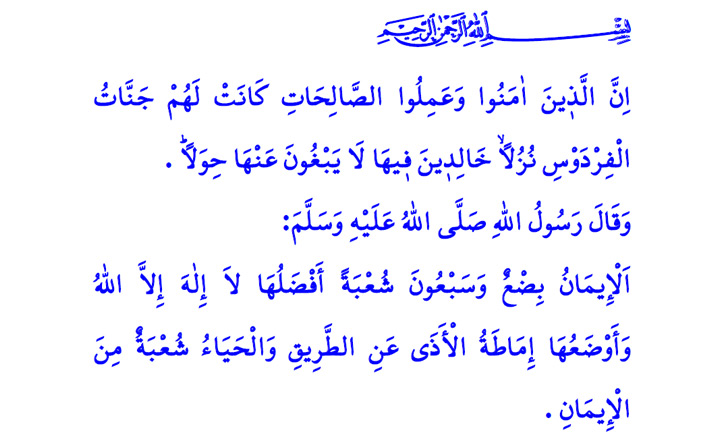 İmanın gönlümüzde kök salması, iman esaslarını hayatımıza yansıtmaktan geçmektedir. Nitekim Peygamberimiz (s.a.s) bir hadislerinde şöyle buyurur: “İmanın yetmiş küsur şubesi vardır. Bunların en üstünü ‘Allah’tan başka ilâh yoktur’ sözüdür. En alt derecesi ise yoldaki eziyet veren şeyleri kaldırmaktır. Hayâ da imanın bir şubesidir.”