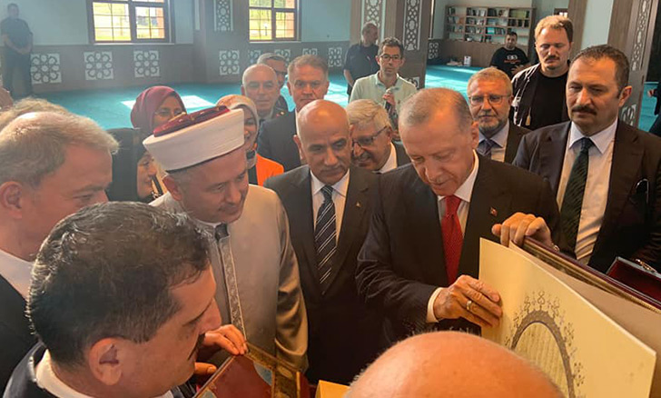 Cumhurbaşkanı Erdoğan, cami içindeki incelemeleri sırasında memnuniyetini dile getirerek "Tarihe kayıt düşülecek bir eser olmuştur." dedi.
