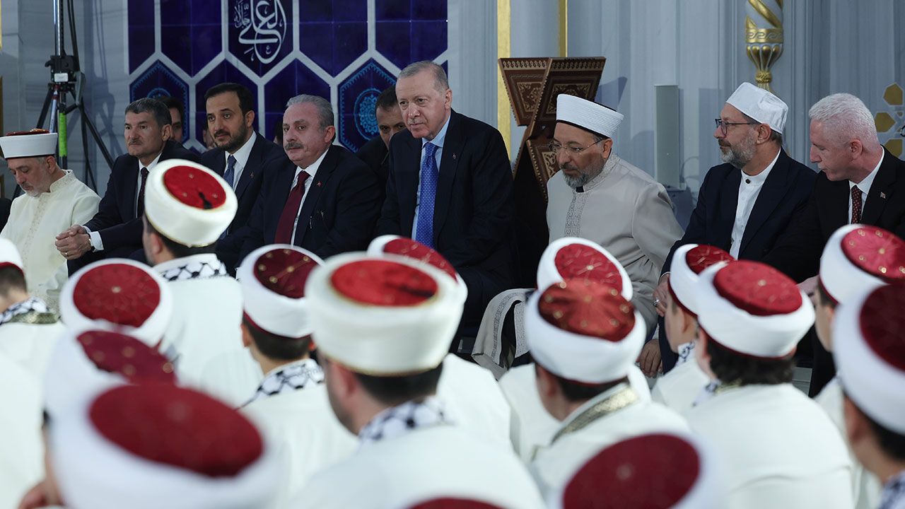 Cumhurbaşkanı Erdoğan'ın Kur'an-ı Kerim tilavet ettiği törende Reisul Kurra Mustafa Demirkan dua etti.