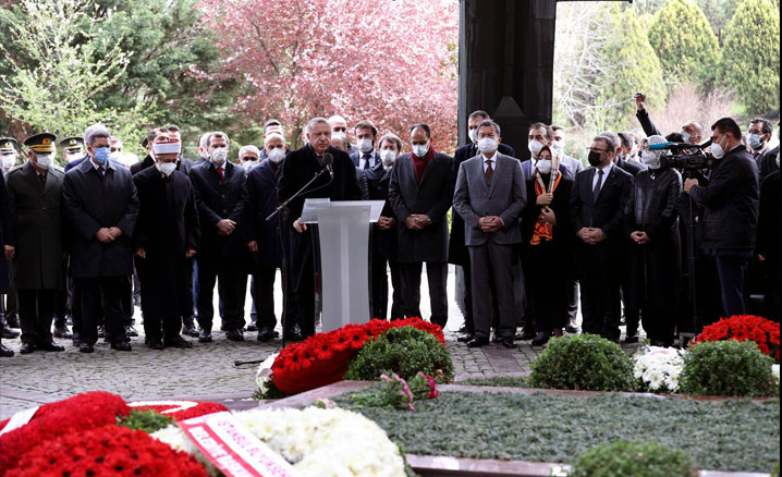 Topkapı Anıt Mezar'da düzenlenen törene katılan Cumhurbaşkanı Recep Tayyip Erdoğan, Özal'ın kabri başında Kur'an-ı Kerim tilavetinde bulundu.