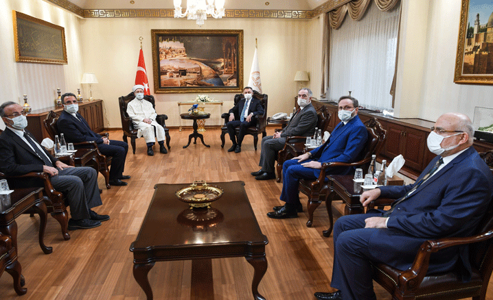Ziyarette, Din İşleri Yüksek Kurulu Başkanı Prof. Dr. Abdurrahman Haçkalı, Diyanet İşleri Başkan Yardımcıları Prof. Dr. İbrahim Hilmi Karslı, Doç. Dr. Selim Argun ve Osman Tıraşçı ile Mushafları İnceleme ve Kıraat Kurulu Başkanı Hafız Osman Şahin karşıladı.