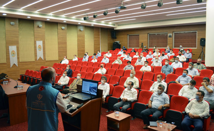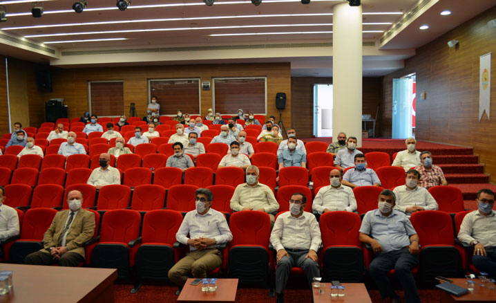 Denizli Valiliği Toplantı Salonu'nda koronavirüs tedbirleri eşliğinde düzenlenen toplantıya Denizli Müftüsü Mehmet Aşık, İl Müftü yardımcıları, ilçe müftüleri, şube müdürleri ve vaizler katıldı.