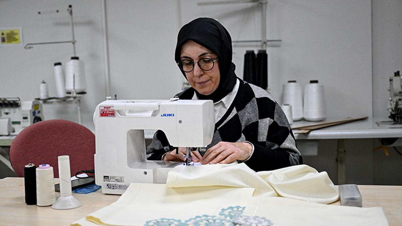 Türkiye Diyanet Vakfı Kadın Kolları Dikiş Atölyesi sorumlusu Sevilay Akdoğan da gönüllülerle birlikte bağış yoluyla gelen ya da yürüttükleri projelerden elde edilen dantel ve kumaşlardan ürünler ürettiklerini, kadın giyimi üzerine dikiş dersleri verdiklerini anlattı.