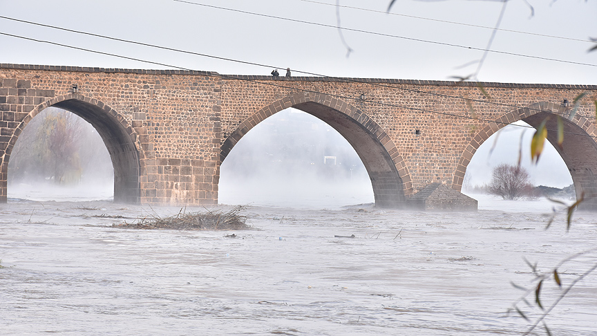 Tarihi köprü çevresindeki kafelere ait bazı yapılar ve malzemeler ile Hevsel bahçelerinin nehir yatağına yakın bölümleri su altında kaldı.