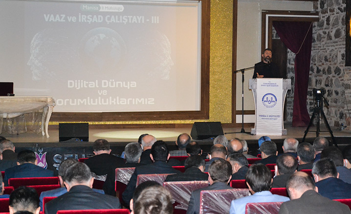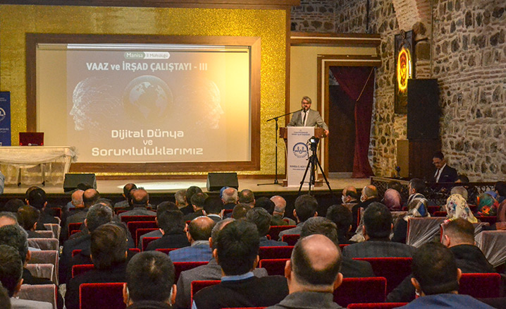 Manisa İl Müftülüğü tarafından din hizmetlerinde verimliliği arttırmak, etkili ve sahih din hizmeti sunumuna katkı sağlamak amacıyla düzenlenen Vaaz ve İrşad Çalıştayları'nın üçüncüsü, "Dijital Dünya ve Sorumluluklarımız" temasıyla gerçekleştirildi.