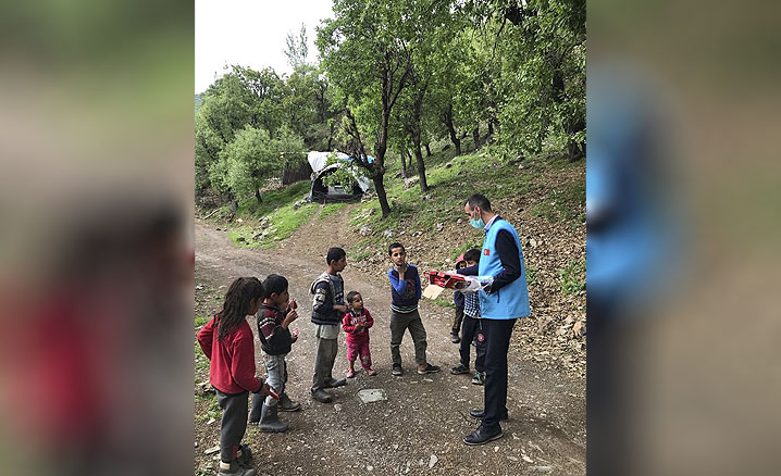 Yardıma ihtiyacı olan herkese ulaşabilmek adına çalmadık kapı bırakmayan din görevlileri, gittikleri yerlerde çocuklara da hediyeler verdi.