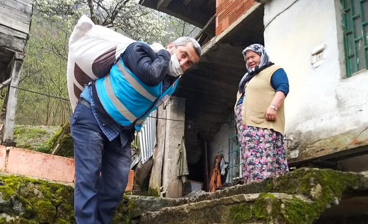 Giresun Valiliği bünyesinde oluşturulan "Vefa Sosyal Destek Grubu" çalışmalarına din görevlileri eliyle destek veren İl Müftülüğü, kırsalda jandarma, merkezde emniyetle iş birliği içerisinde sokağa çıkmaları sınırlandırılan vatandaşların ihtiyacını karşılamak için çalışıyor.