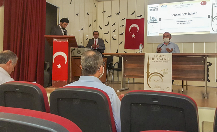 İl Müftüsü Abdurrahman Şahin’in "Cami ve İlim" konulu konferansından sonra program hafta münasebetiyle okunan hatimlerin duası ile tamamlandı.