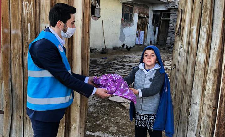 Din görevlileri, vatandaşların ihtiyacını karşılamak amacıyla gittiği adreslerde, yanlarında götürdüklei oyuncakları çocuklara hediye ediyor.