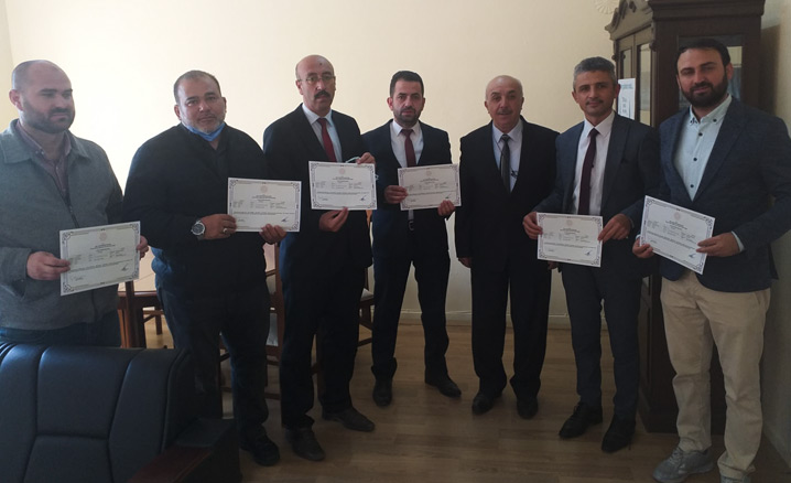 İlçe Müftülüğü ile Halk Eğitim Merkezi iş birliğinde açılan Temel İşaret Dili Kursu'nu tamamlayan din görevlileri sertifikalarını İlçe Müftüsü Dr. Eyyup Aydın'dan aldı.