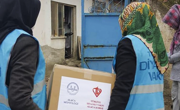 Alaca İlçe Müftülüğü, Türkiye Diyanet Vakfı Alaca Şubesi ile iş birliği içerisinde ihtiyaç sahibi ailelere yaptığı yardımlarını sürdürüyor.