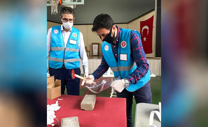Din görevlilerince üretilen yüz koruyucu siperli maskeler, hastanelerde görev yapan doktorlar ve sağlık çalışanları ile polislere ulaştırılıyor.