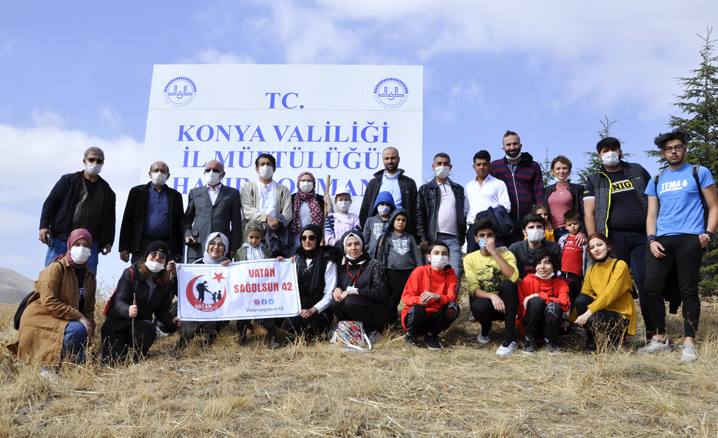 Konya İl Müftülüğü koordinesinde gerçekleştirilen etkinlik kapsamında din görevlileri, şehit ve gaziler adına fidan dikti.