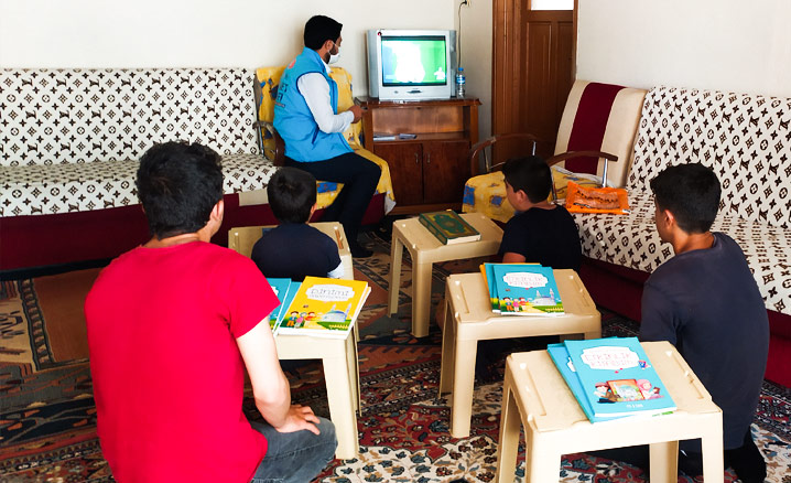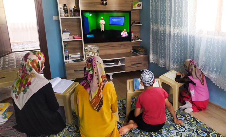 Yaz Kur’an kurslarına kayıt yaptıran öğrencilere ders ve etkinlik kitaplarını ulaştıran din görevlileri, evlerde Diyanet TV frekans ayarı yaptı, Diyanet İşleri Başkanı Prof. Dr. Ali Erbaş'ın yaptığı açılış dersini öğrencilerle birlikte takip etti.