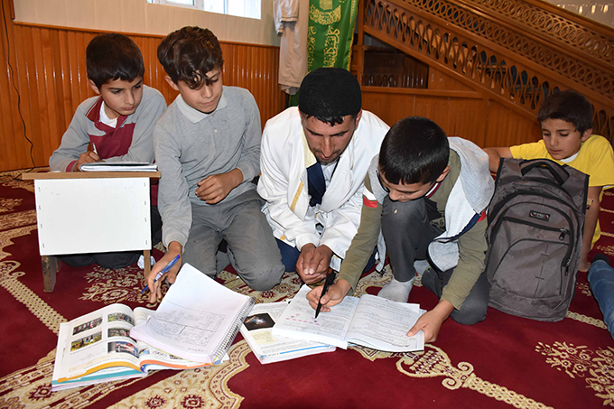 Öğrencilerden Esma Akar da okuldan çıktıktan sonra hemen camiye gittiklerini anlatarak, "Camiye geldiğimizde ilk önce Kur'an-ı Kerim dersi alıyoruz ardından hocamızla okul ödevlerini yapıyoruz. Anlamadığımız soruları imama soruyoruz ve bize yardımcı oluyor. Camide ödevimizi bitirdikten sonra eve gidiyoruz, evde onları tekrar ediyoruz." diye konuştu.