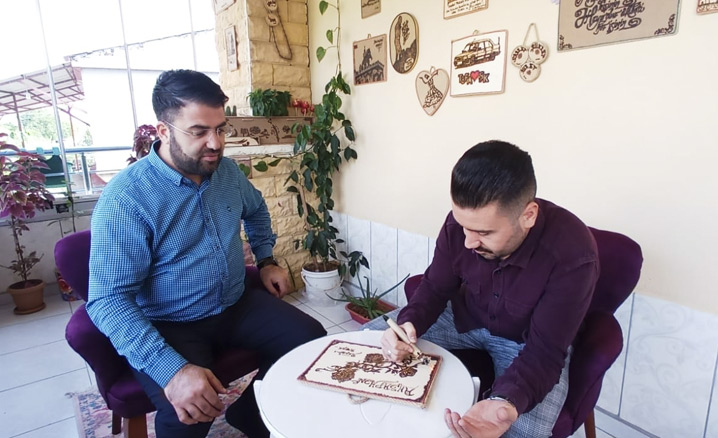 "Yaptığım eserleri sosyal medyadan paylaşınca birçok esnaf abimiz, kurum amirlerimiz ve meslektaşlarımıza özel eserler yapmaya başladım. Bunlar çok beğenildi. Bu sanatın bana en çok kattığı şey ise çok güzel dostluklar edindim, gençlerle tanıştım. Onlarla sıkça vakit geçiriyorum. Gençlere ahşap yakma sanatı ve birçok sanat eserlerini tanıtarak onlara da teşvik olması için uğraşıyorum.