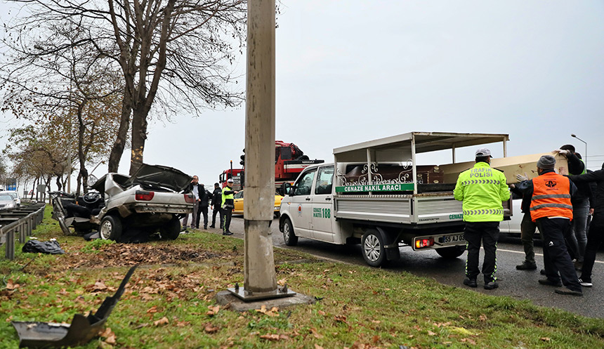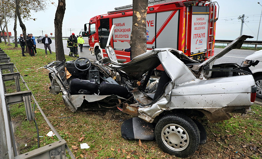 Samsun'da otomobilin refüjdeki ağaca çarptığı kazada 2 kişi vefat etti.