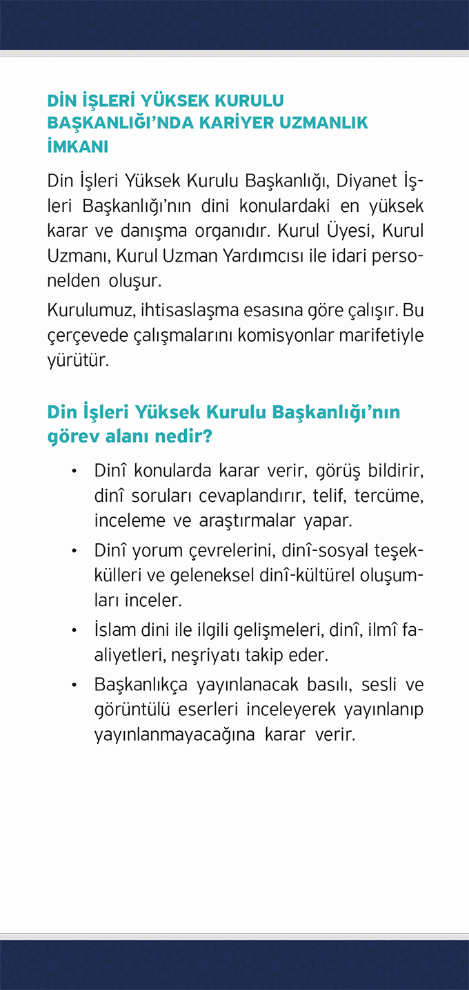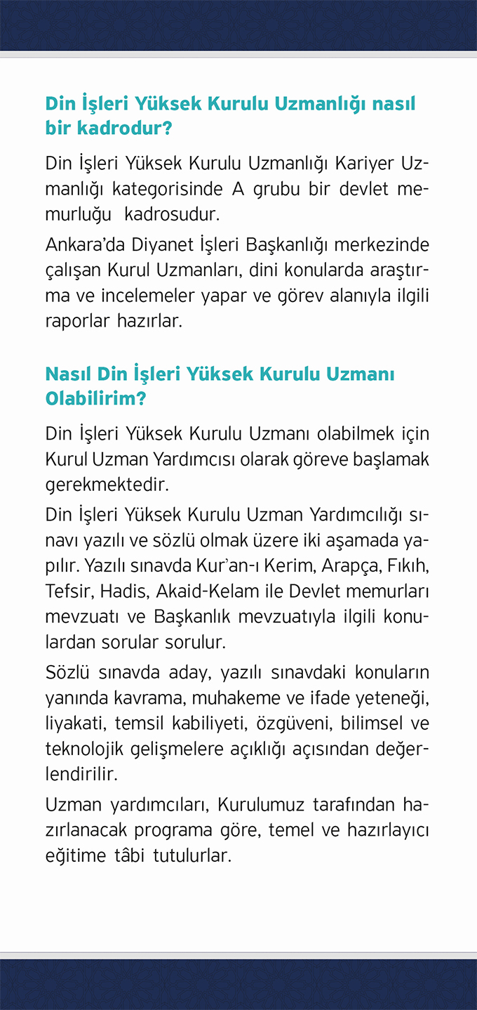 DİN İŞLERİ YÜKSEK KURULU BAŞKANLIĞINDA KARİYER UZMANLIK İMKANI