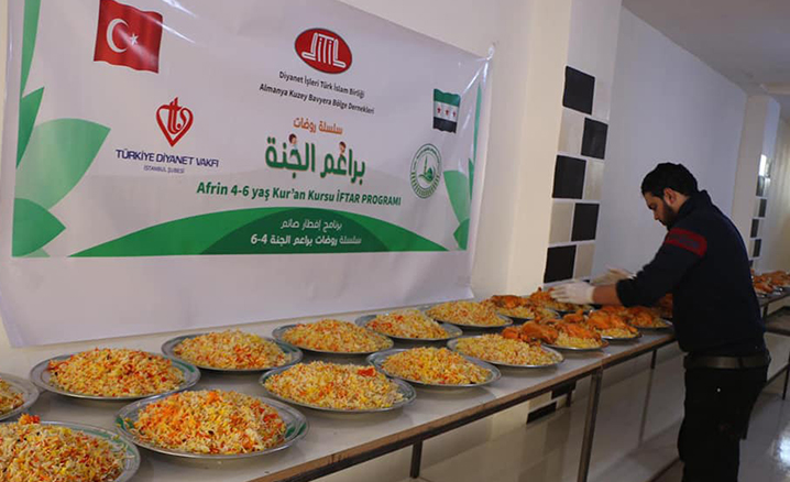 Kuzey Bavyera DİTİB Eyalet Birliği Başkanı Hasan Aslan, yaptığı açıklamada, “Bu yıl camilerimizde veremediğimiz iftar yemeğini Türkiye Diyanet Vakfı işbirliğiyle Afrin’deki kardeşlerimizle paylaştık. 4-6 yaş grubu Kur’an kursu öğrencilerine ve ailelerine yönelik iftar sofralarıyla Ramazan sevincini kardeşlerimizle paylaşıyoruz. Ramazan bereketini dünyanın dört bir yanına taşıyoruz.” ifadesini kullandı.