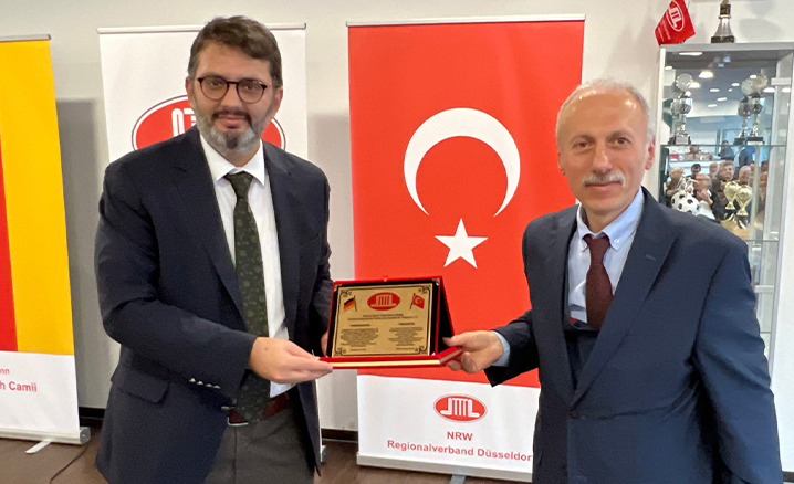 DİTİB Dini Yüksel İştişare Kurulu Başkan Vekili Dr. Muharrem Kuzey, caminin yapımı ve hayata geçirilmesinde emeği geçenler adına dernek başkanı Bahri Erdoğan’a plaket takdim etti.