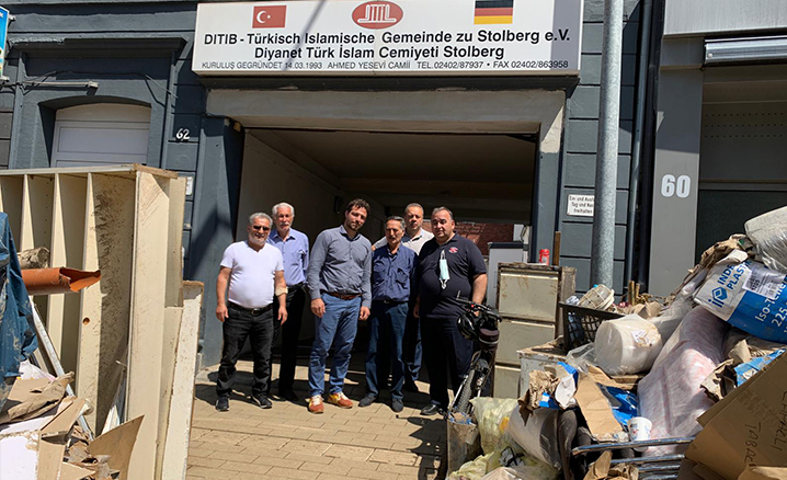 Diyanet İşleri Türk İslam Birliği (DİTİB) teşkilatına bağlı Stolberg, Bonn, Hückelhoven, Übach-Palenberg , Wassenberg ve Leverkusen Spor Klübü, selden zarar gören Sinzig, Stolberg, Erfstadt ve Ahrweiler şehirlerinde pide, su, temizlik malzemesi ve gıda yardımı su dağıttı. Bununla beraber DİTİB gönüllüleri selden zarar gören şehir sakinlerinin evlerinin temizlenmesine de yardım etti.