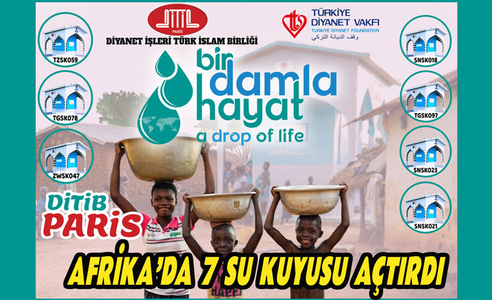 Paris Diyanet İşleri Türk İslam Birliği (DİTİB Paris), Paris Din Hizmetleri Ataşeliği ve bağlı dernekler, Türkiye Diyanet Vakfının "Bir Damla Hayat" su kuyusu projesi için kampanya başlattı.