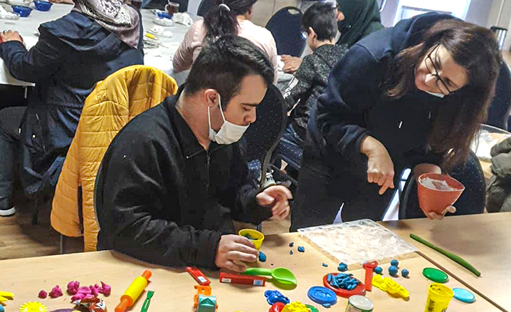 Diyanet İşleri Türk İslam Birliği (DİTİB) Federal Kadın Birliği tarafından hazırlanan “Engelsiz Cami” projesi kapsamında down sendromlu çocuklar bir taraftan sanatla tanışırken bir yandan da camiyi tanıma imkanı buluyor.