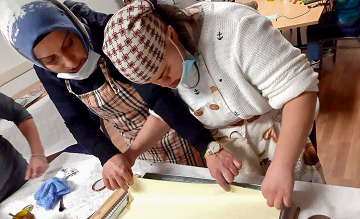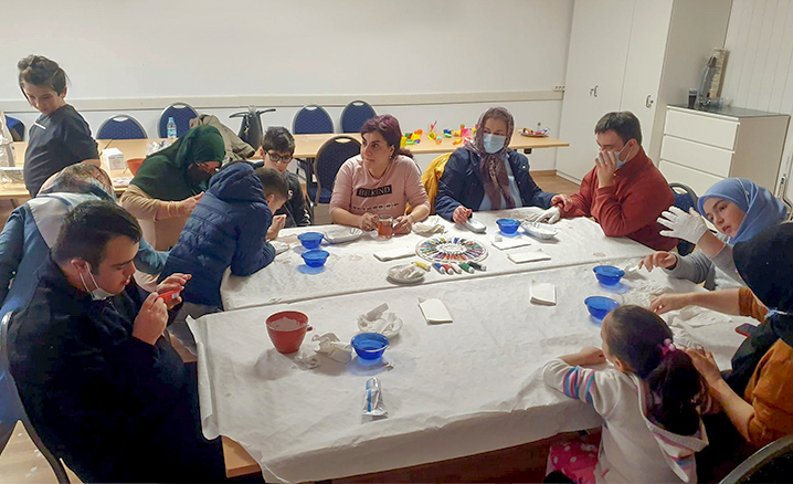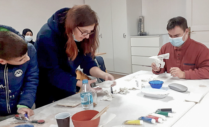 Bu kapsamda Garbsen DİTİB Kocatepe Camii tarafından düzenlenen etkinliğe katılan özel çocuklar ebru ve boyama sanatını öğrendi.