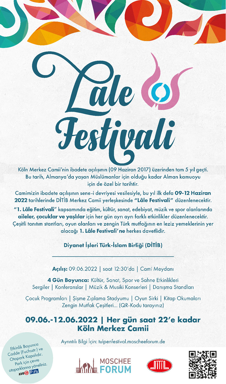 Bu kapsamda Diyanet İşleri Türk İslam Birliği (DİTİB), Köln Merkez Camii'nin ibadete açılışının sene-i devriyesi münasebetiyle "Lale Festivali" düzenledi.