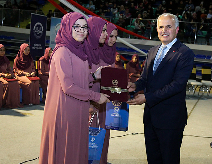 Kütahya Spor Salonu’nda düzenlenen merasime Vali Dr. Ömer Toraman, Diyanet İşleri Başkan Yardımcısı Prof. Dr. Ramazan Muslu, İl Müftüsü Hüseyin Hazırlar, İl Milli Eğitim Müdürü Hasan Başyiğit, daire amirleri, sivil toplum kuruluşu temsilcileri, din görevlileri, hafız öğrenciler ve aileleri katıldı.