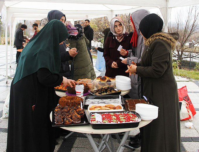 Üniversitede bir farkındalık oluşturmak amacıyla hazırlanan kermesi ziyaret eden, akademisyenler ve öğrencilerle vatandaşlar, ürünleri satın alarak destekte bulundular.
