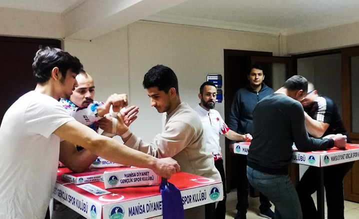 Bu kapsamda Manisa Diyanet Gençlik ve Spor Kulübü'nde bilek güreşi sporuna devam eden gençler, Türkiye Bilek Güreşi Şampiyonası'na hazırlanıyor.