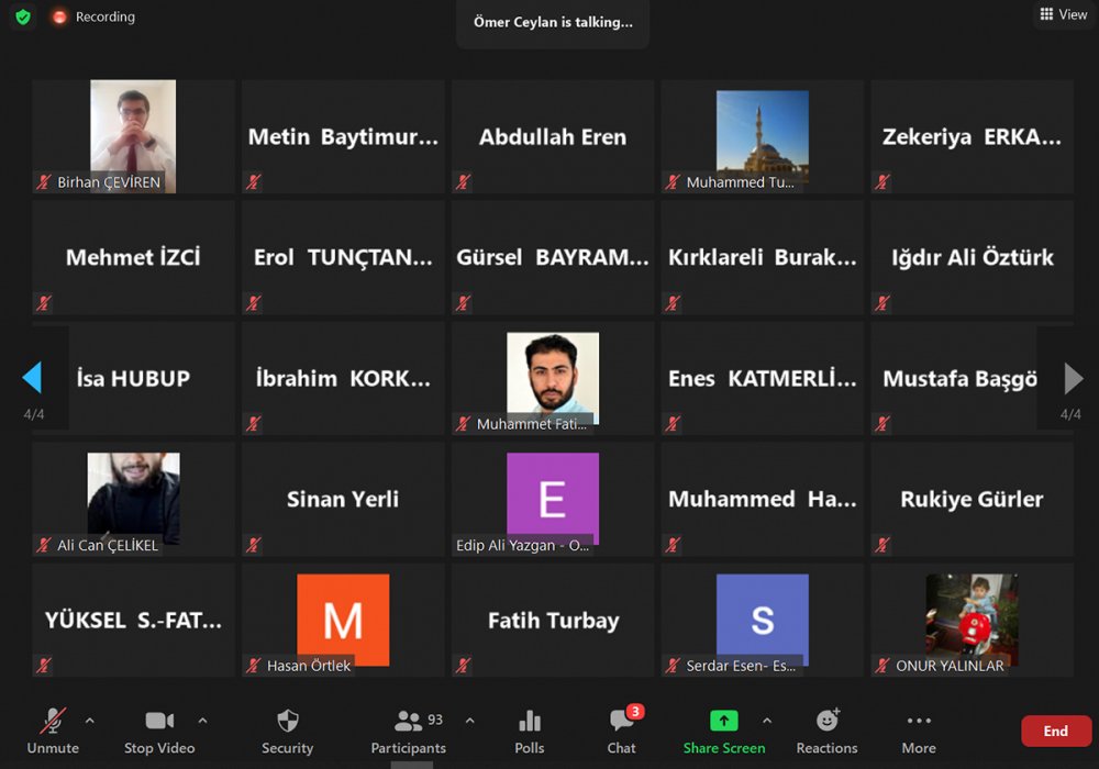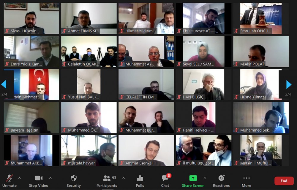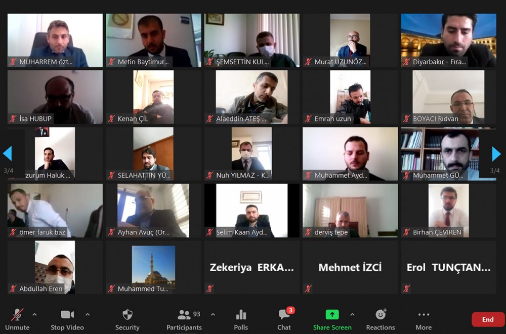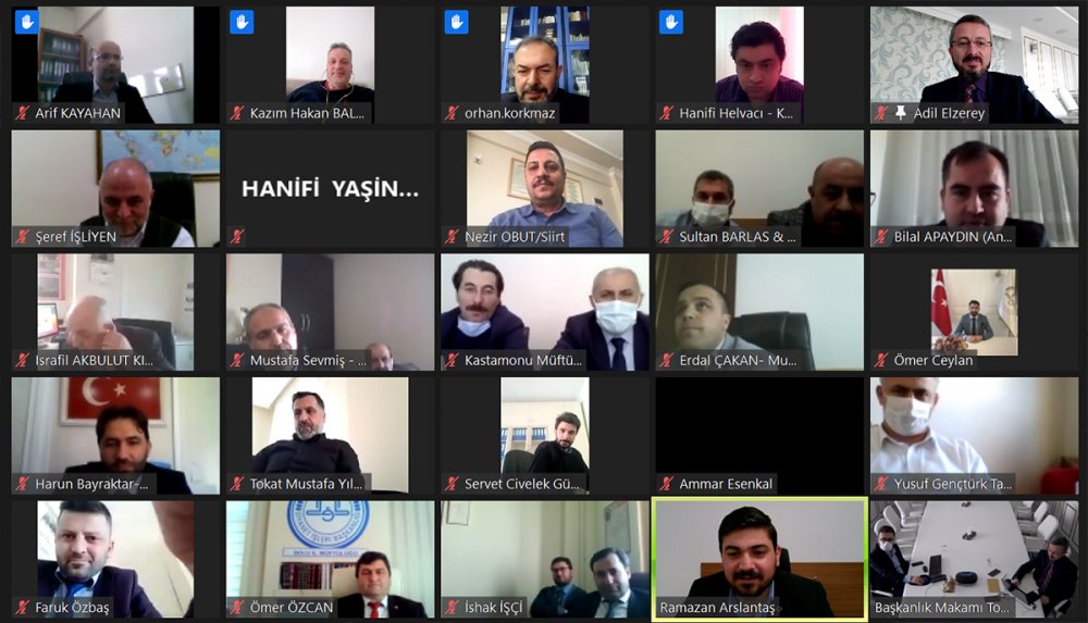 Tüm dünyada etkisini sürdüren yeni tip koronavirüs (Covid-19) tedbirleri kapsamında çevrimiçi düzenlenen toplantıya, Diyanet İşleri Başkanlığı Başkanlık Müşaviri ve Diyanet Haber Koordinatörü Adil Elzerey, Diyanet Haber Editörü Ramazan Arslantaş, Başkanlık muhabirleri Ömer Ceylan ve Ammar Esenkal ile Diyanet Haber Teknik Sorumlusu Berkay Kanderun ve 81 ilde “Diyanet Haber Temsilcisi” olarak görev yapan personel katıldı.