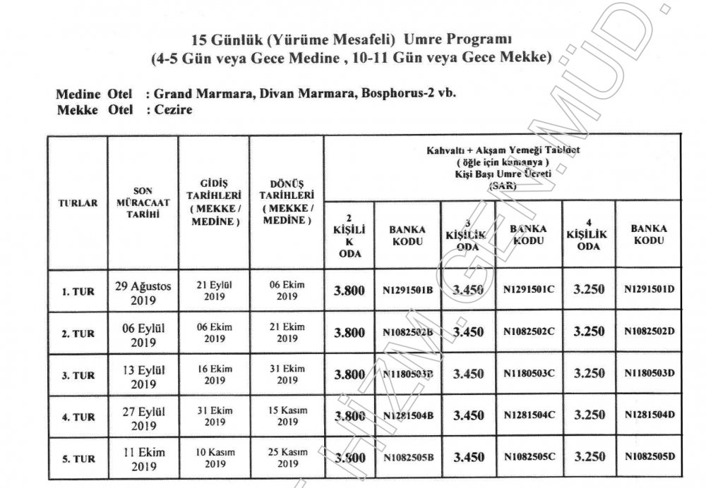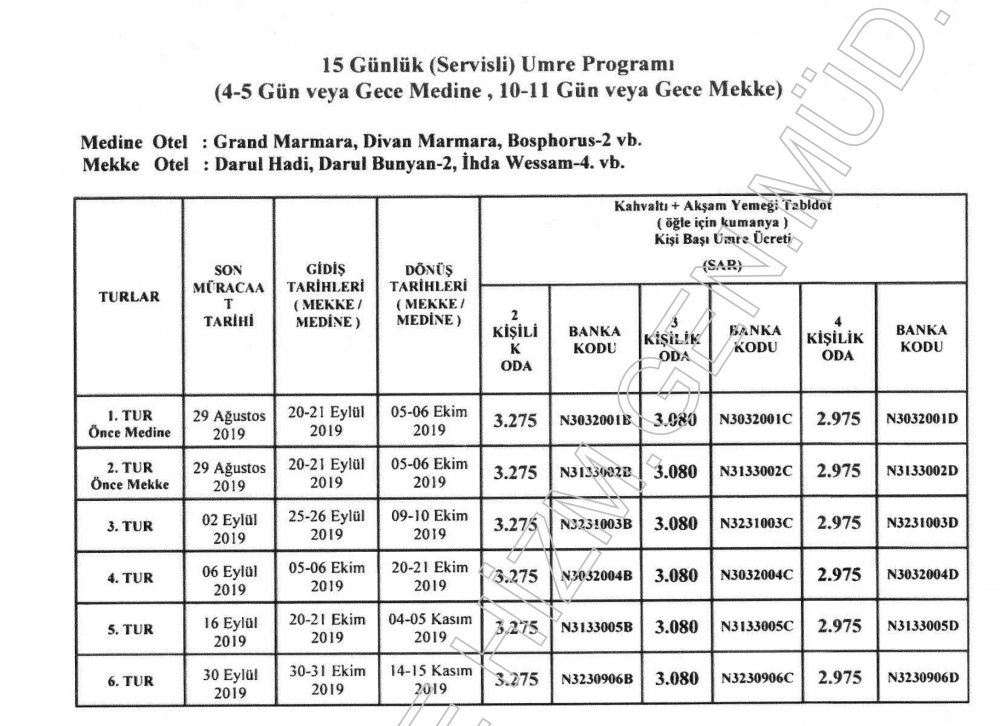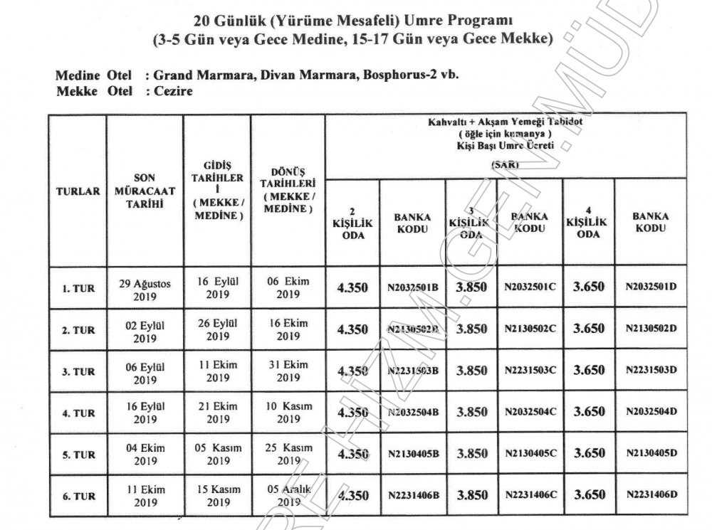 Diyanet İşleri Başkanlığı 2019-2020 Yılı Umre fiyatları belli oldu.