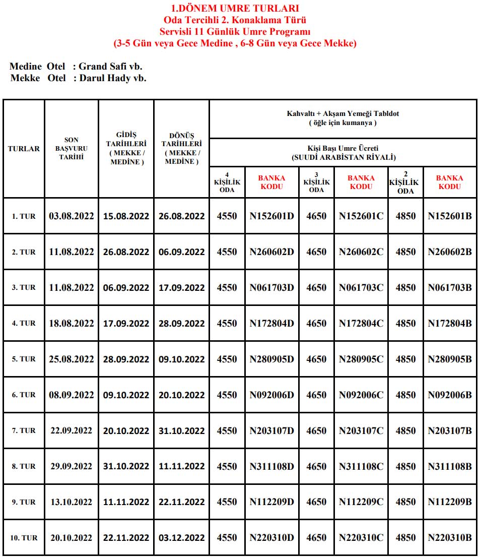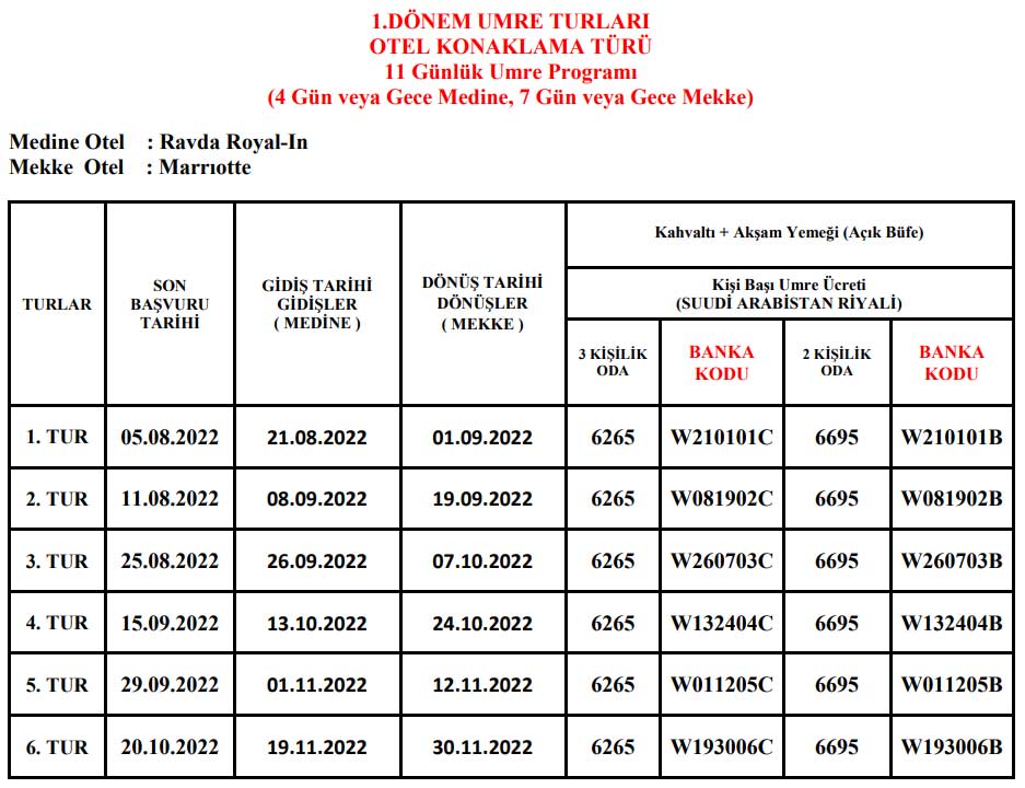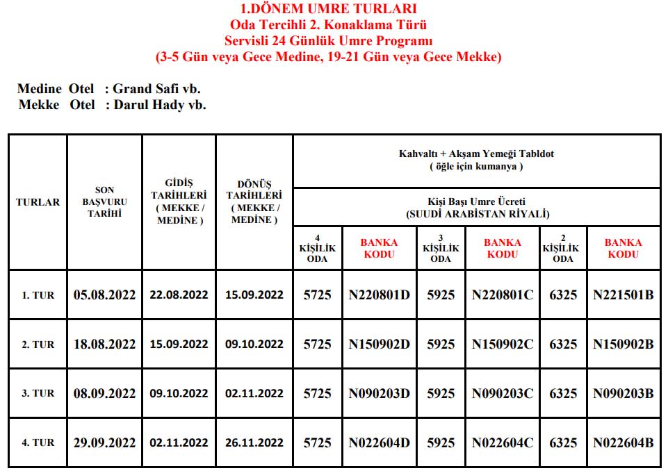 2022-2023 yılında Diyanet Organizasyonu ile Umre’ye gitmeyi tercih edenler;