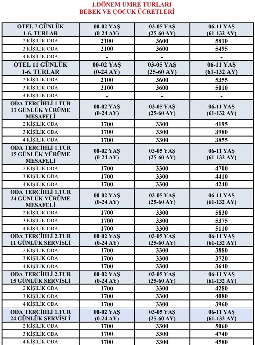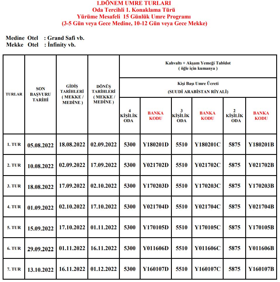 Diyanet İşleri Başkanlığı 2022-2023 için umre turlarının fiyatlarını açıkladı.