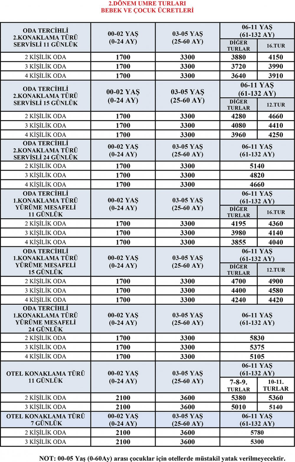 Hac ve Umre Hizmetleri Genel Müdürlüğünden Diyanet Haber'e verilen bilgide "Aralık, Ocak, Şubat ve Mart Dönemi; Servisli, Yürüme Mesafeli ve Otel tercihli umre turlarımızın 2. dönem başvuruları başlamıştır." denildi.