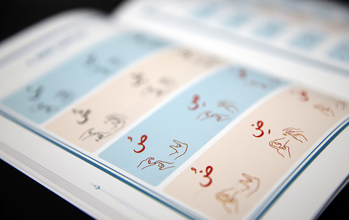 Türk İşaret Dili Alfabesi'ne sadık kalınarak harflerin kalınlık, incelik ve pelteklik özelliklerinin renklerle belirtildiği kitapta, siyah renk ince, kırmızı renk kalın, mavi renk peltek, yeşil renk ise ince boğaz harfleri temsil ediyor.