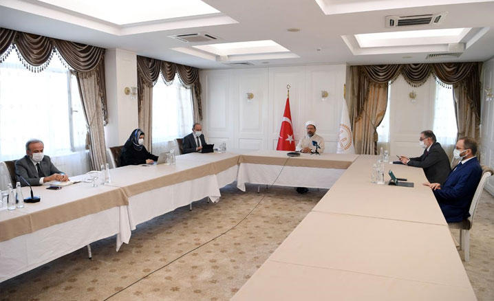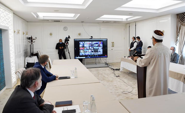 Diyanet İşleri Başkanı Prof. Dr. Ali Erbaş, il müftüleri, il müftü yardımcıları ve ilçe müftülerinin katılımıyla çevrimiçi düzenlenen “Salgın Dönemi Diyanet Hizmetleri Sorunlar ve Çözüm Önerileri” konulu toplantıya katıldı.